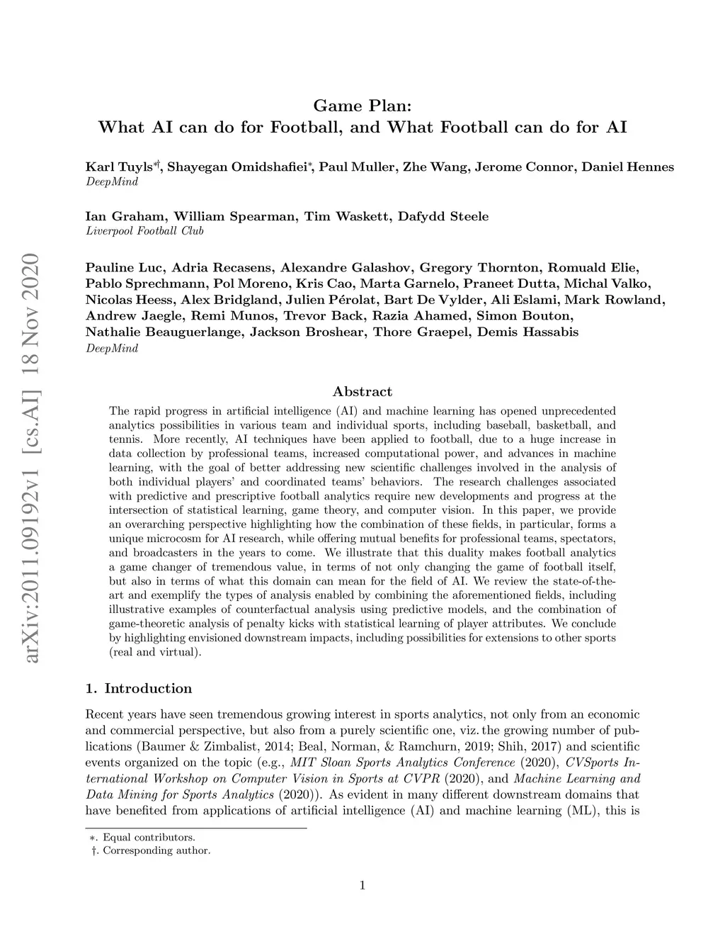 Game Plan: What AI can do for Football, and What Football can do for AI