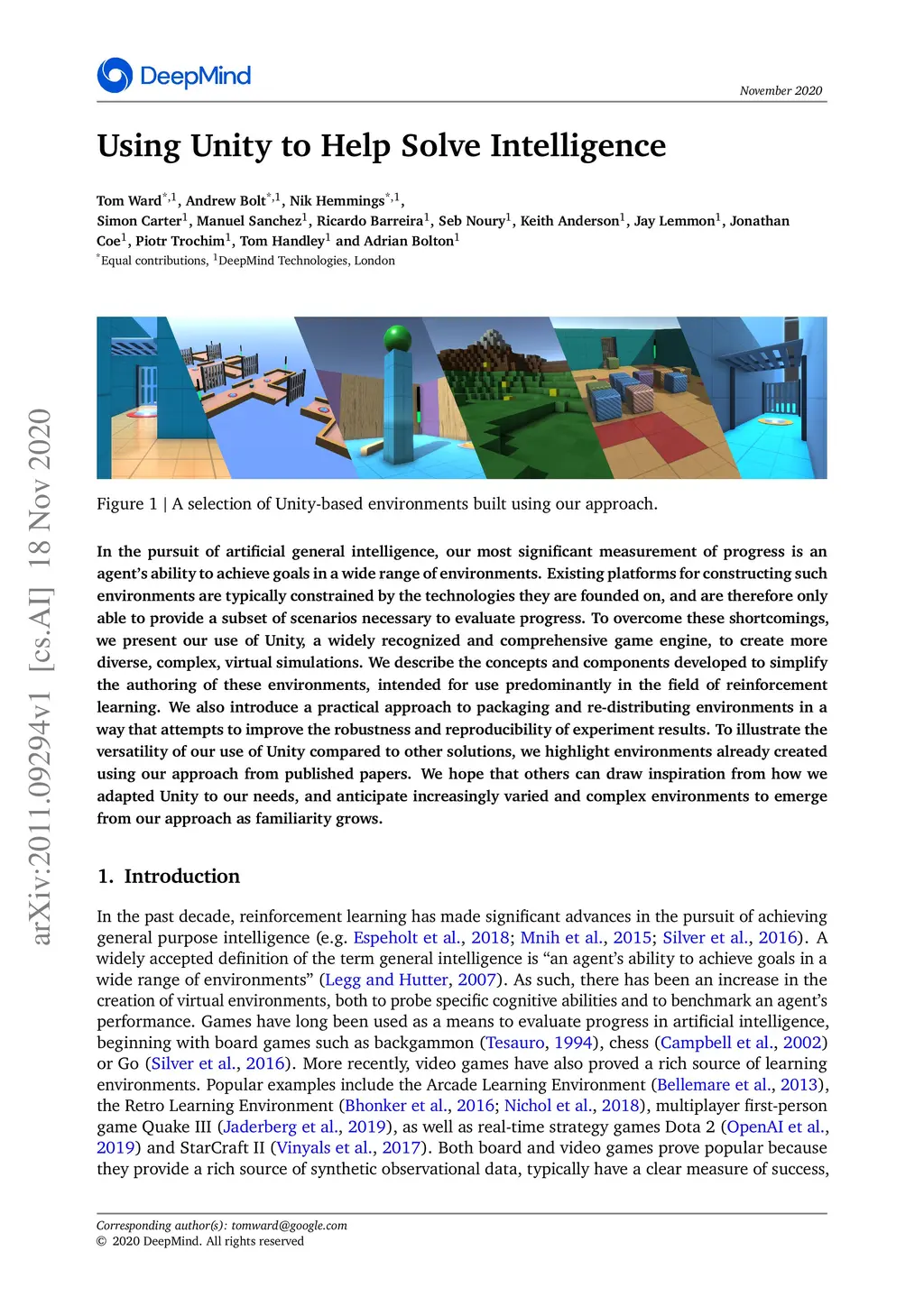 Using Unity to Help Solve Intelligence