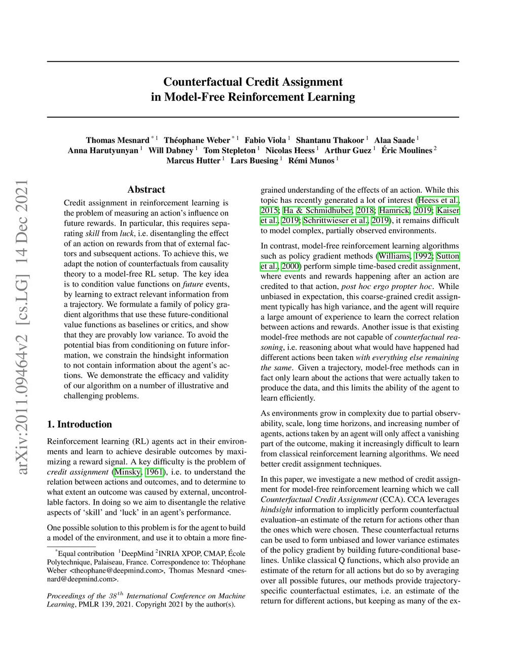 Counterfactual Credit Assignment in Model-Free Reinforcement Learning