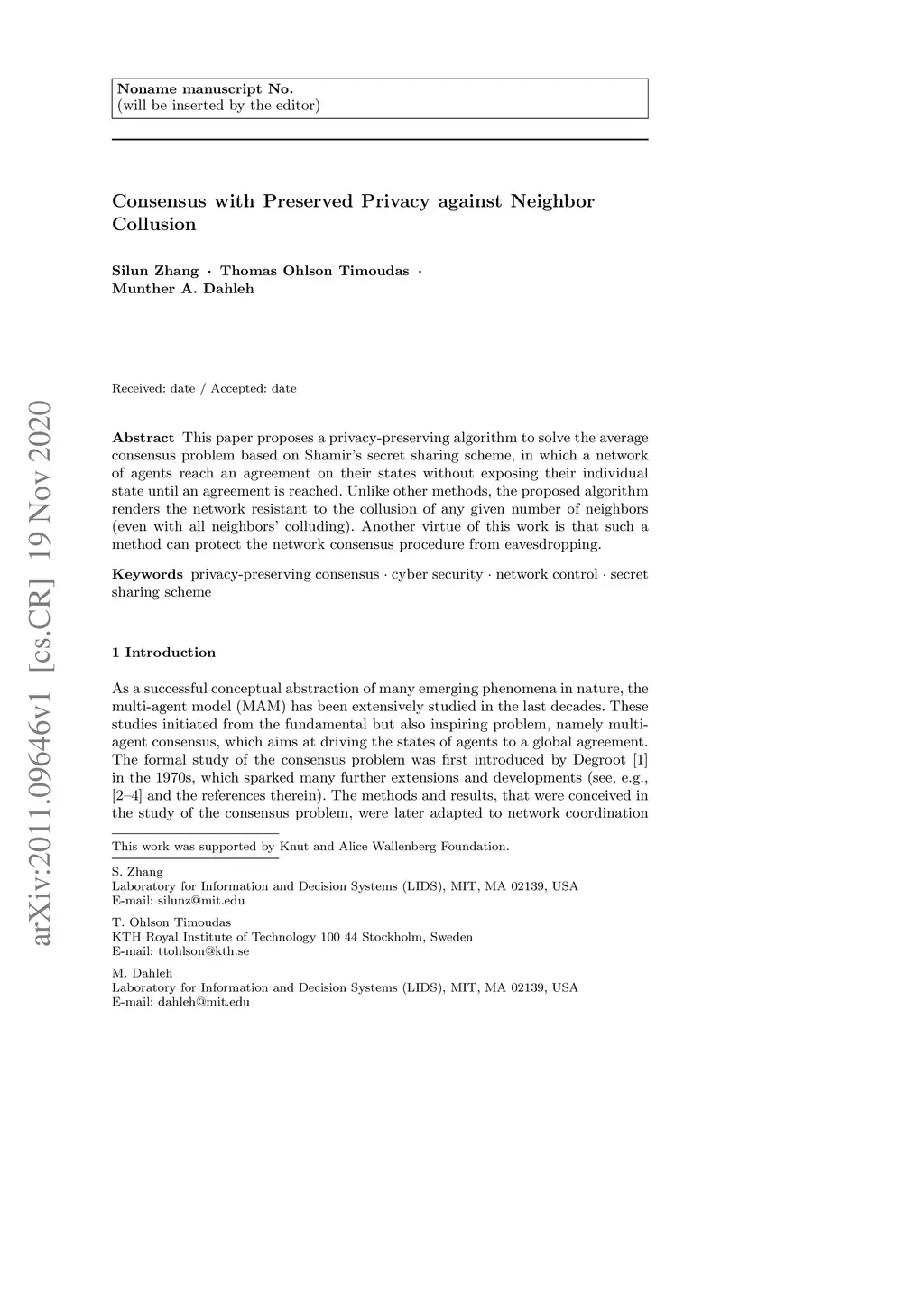 Control Theory and Technology (CTT), 2020