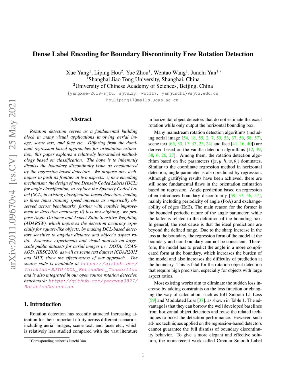 Dense Label Encoding for Boundary Discontinuity Free Rotation Detection