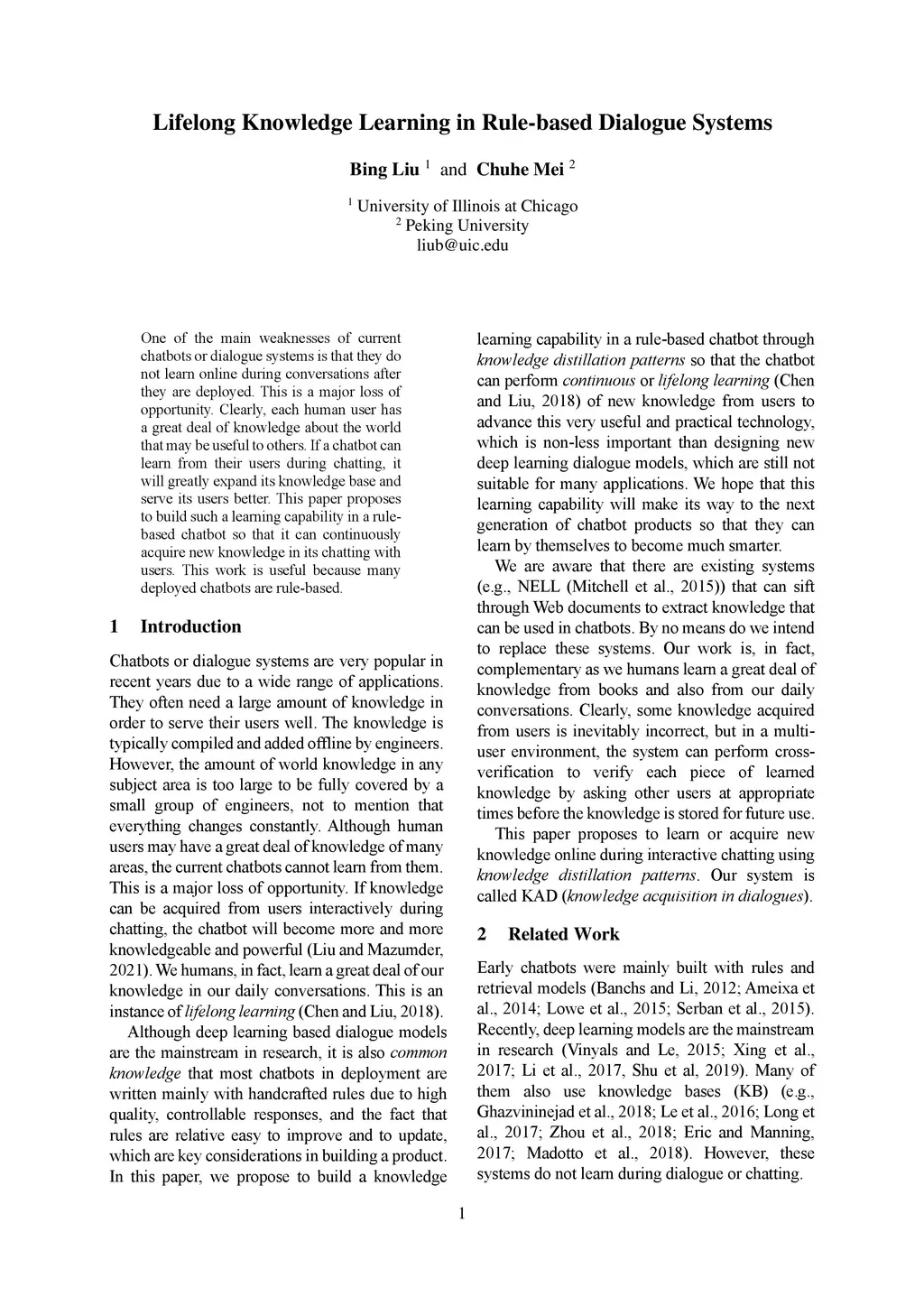 Lifelong Knowledge Learning in Rule-based Dialogue Systems
