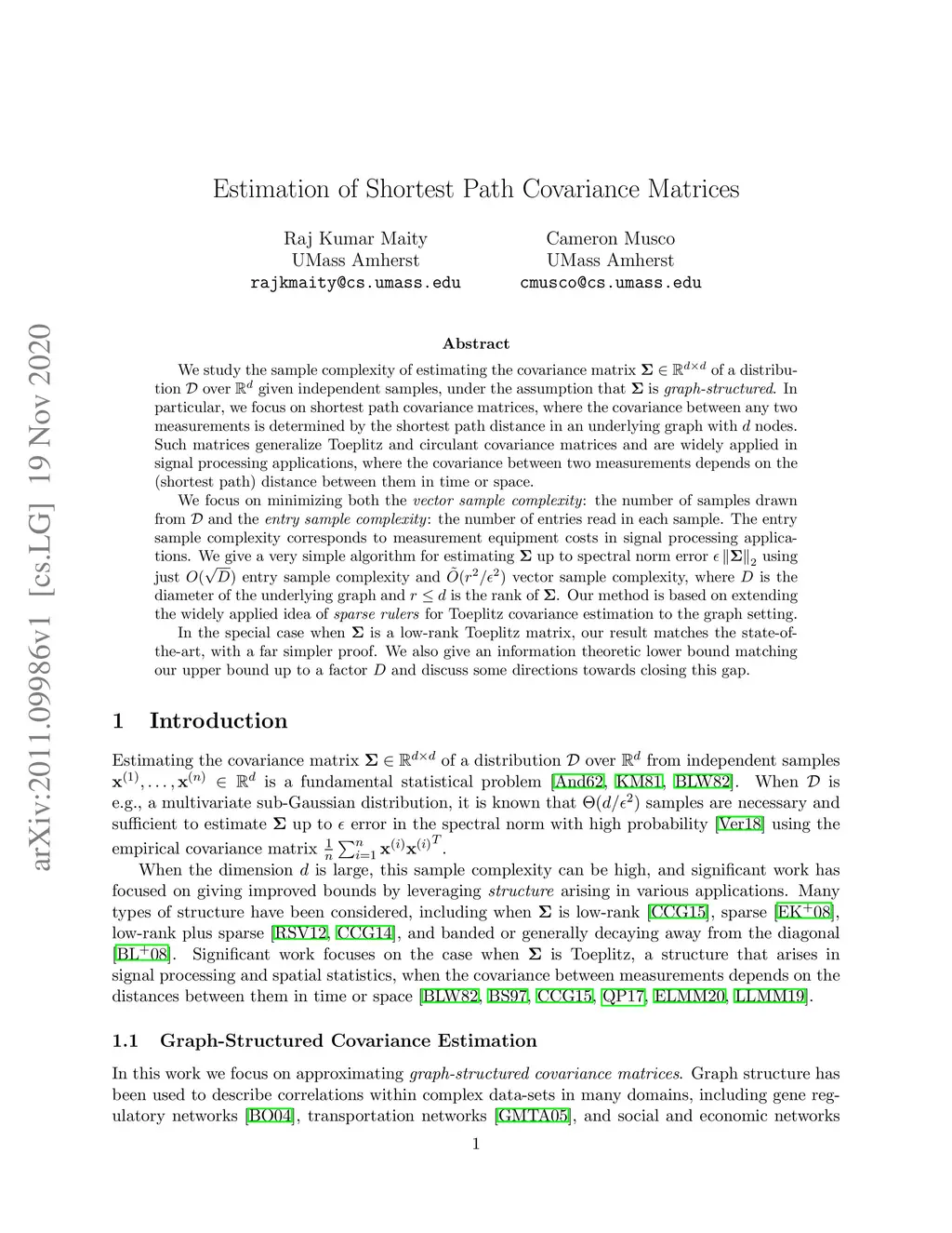 We study the sample complexity of estimating the covariance matrix of a distribution over given independent samples, under the assumption that is graph-structured. In particular, we focus on shortest path covariance matrices, where the covariance between any two measurements is determined by the shortest path distance in an underlying graph with nodes. Such matrices generalize Toeplitz and circulant covariance matrices and are widely applied in signal processing applications, where the covariance between two measurements depends on the (shortest path) distance between them in time or space. We focus on minimizing both the vector sample complexity: the number of samples drawn from and the entry sample complexity: the number of entries read in each sample. The entry sample complexity corresponds to measurement equipment costs in signal processing applications. We give a very simple algorithm for estimating up to spectral norm error using just entry sample complexity and vector sample complexity, where is the diameter of the underlying graph and is the rank of . Our method is based on extending the widely applied idea of sparse rulers for Toeplitz covariance estimation to the graph setting. In the special case when is a low-rank Toeplitz matrix, our result matches the state-of-the-art, with a far simpler proof. We also give an information theoretic lower bound matching our upper bound up to a factor and discuss some directions towards closing this gap.