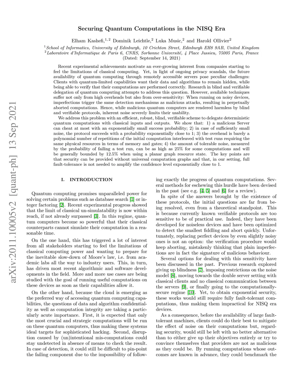 Securing Quantum Computations in the NISQ Era