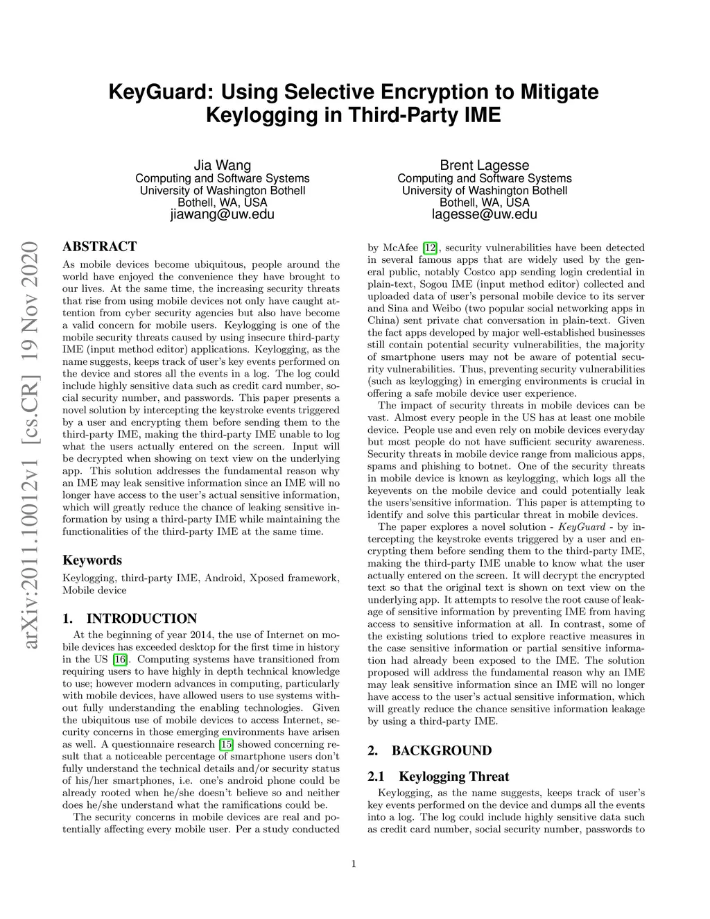 KeyGuard: Using Selective Encryption to Mitigate Keylogging in