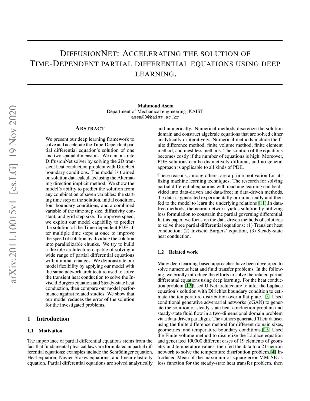 DiffusionNet: Accelerating the solution of Time-Dependent partial