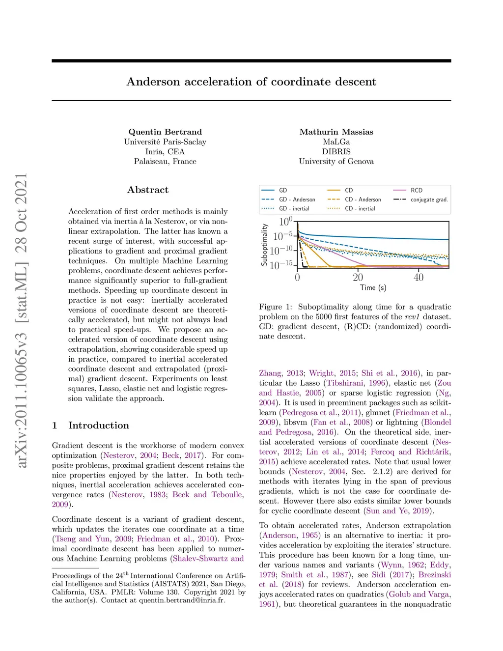 Anderson acceleration of coordinate descent