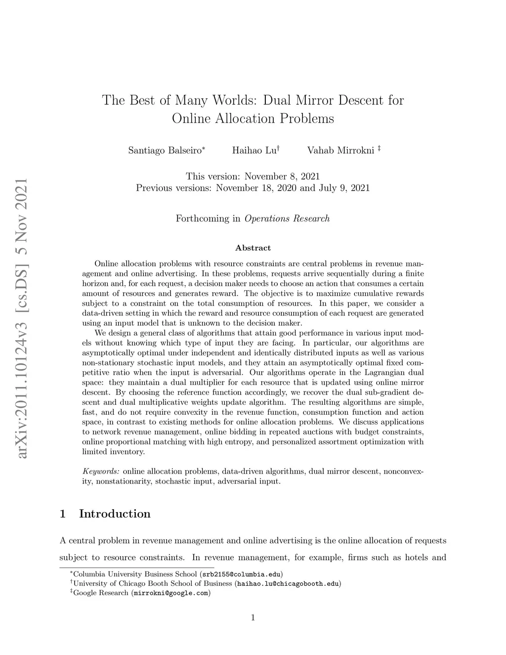 The Best of Many Worlds: Dual Mirror Descent for Online Allocation
