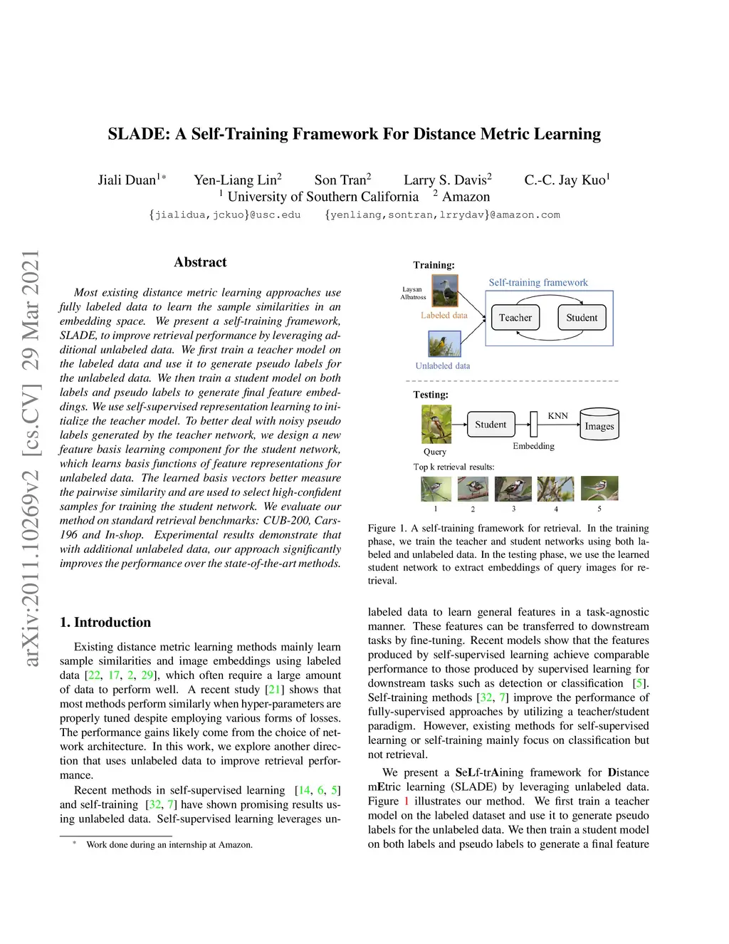 SLADE: A Self-Training Framework For Distance Metric Learning