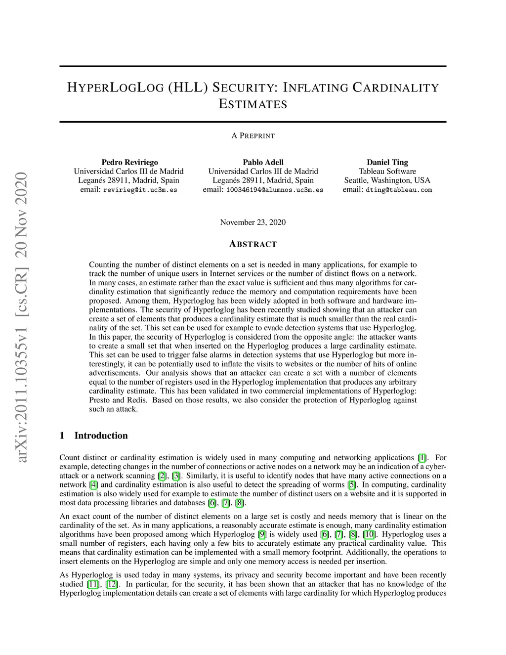HyperLogLog (HLL) Security: Inflating Cardinality Estimates
