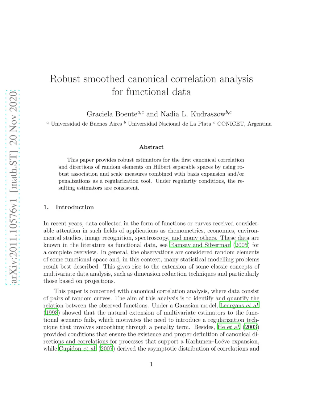 This paper provides robust estimators for the first canonical correlation and directions of random elements on Hilbert separable spaces by using robust association and scale measures combined with basis expansion and/or penalizations as a regularization tool. Under regularity conditions, the resulting estimators are consistent.