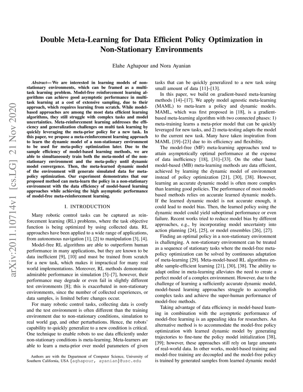 Double Meta-Learning for Data Efficient Policy Optimization in