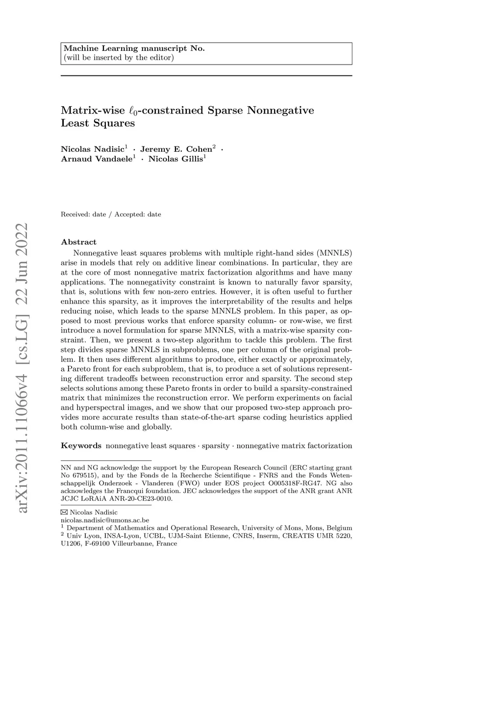 Matrix-wise -constrained Sparse Nonnegative Least Squares