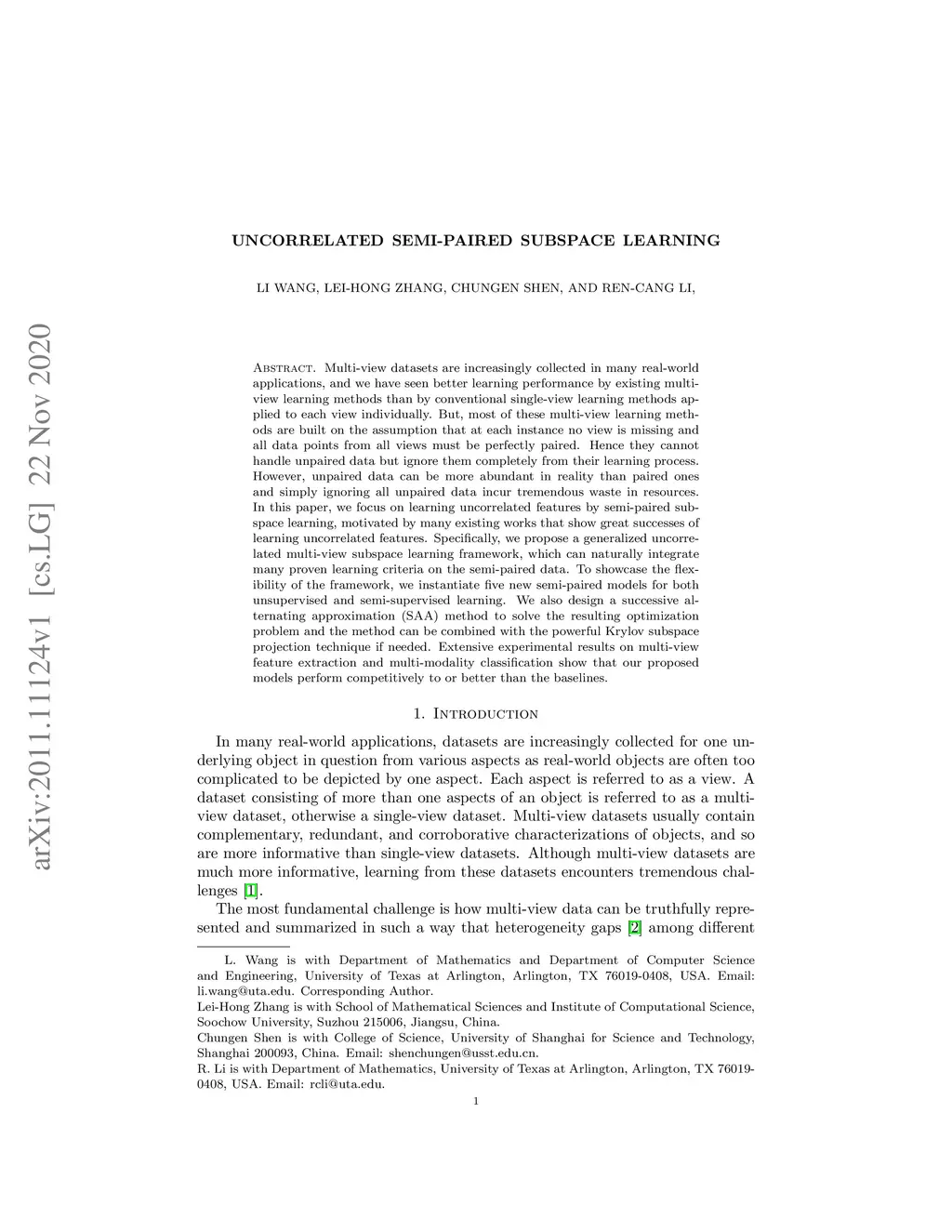 Uncorrelated Semi-paired Subspace Learning