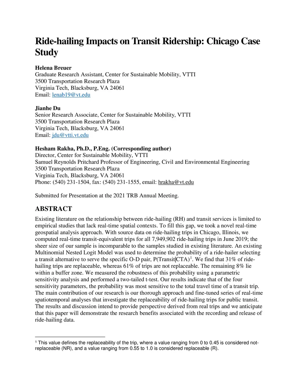 Ride-hailing Impacts on Transit Ridership: Chicago Case Study