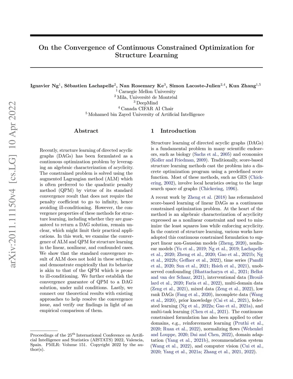Recently, structure learning of directed acyclic graphs (DAGs) has been formulated as a continuous optimization problem by leveraging an algebraic characterization of acyclicity. The constrained problem is solved using the augmented Lagrangian method (ALM) which is often preferred to the quadratic penalty method (QPM) by virtue of its standard convergence result that does not require the penalty coefficient to go to infinity, hence avoiding ill-conditioning. However, the convergence properties of these methods for structure learning, including whether they are guaranteed to return a DAG solution, remain unclear, which might limit their practical applications. In this work, we examine the convergence of ALM and QPM for structure learning in the linear, nonlinear, and confounded cases. We show that the standard convergence result of ALM does not hold in these settings, and demonstrate empirically that its behavior is akin to that of the QPM which is prone to ill-conditioning. We further establish the convergence guarantee of QPM to a DAG solution, under mild conditions. Lastly, we connect our theoretical results with existing approaches to help resolve the convergence issue, and verify our findings in light of an empirical comparison of them.