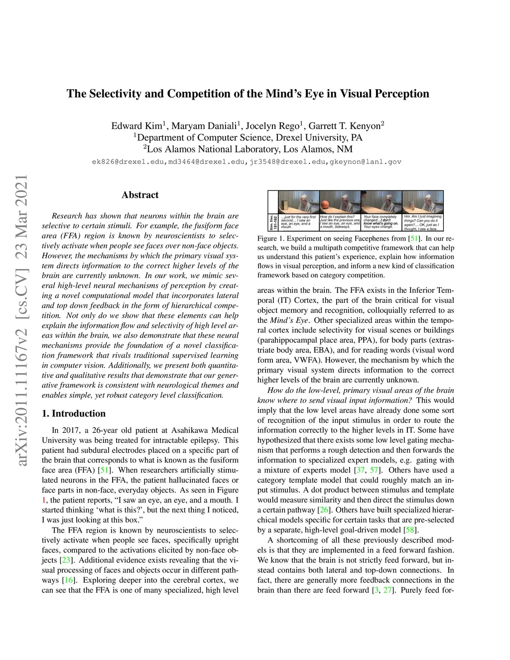 Research has shown that neurons within the brain are selective to certain stimuli. For example, the fusiform face area (FFA) region is known by neuroscientists to selectively activate when people see faces over non-face objects. However, the mechanisms by which the primary visual system directs information to the correct higher levels of the brain are currently unknown. In our work, we mimic several high-level neural mechanisms of perception by creating a novel computational model that incorporates lateral and top down feedback in the form of hierarchical competition. Not only do we show that these elements can help explain the information flow and selectivity of high level areas within the brain, we also demonstrate that these neural mechanisms provide the foundation of a novel classification framework that rivals traditional supervised learning in computer vision. Additionally, we present both quantitative and qualitative results that demonstrate that our generative framework is consistent with neurological themes and enables simple, yet robust category level classification.