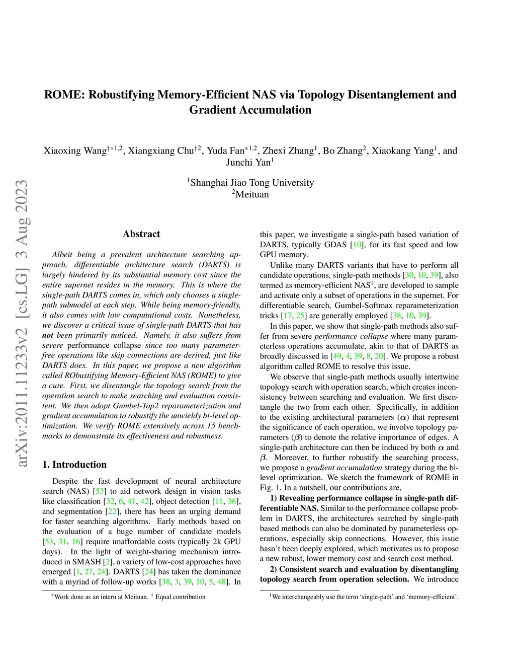 ROME: Robustifying Memory-Efficient NAS via Topology Disentanglement and