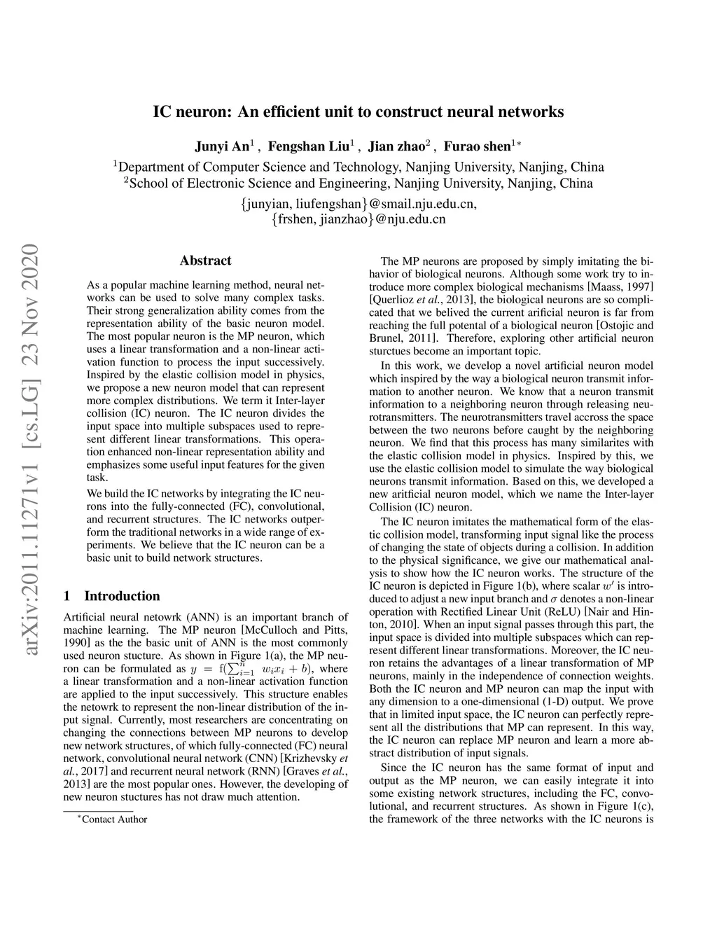 IC Neuron: An Efficient Unit to Construct Neural Networks