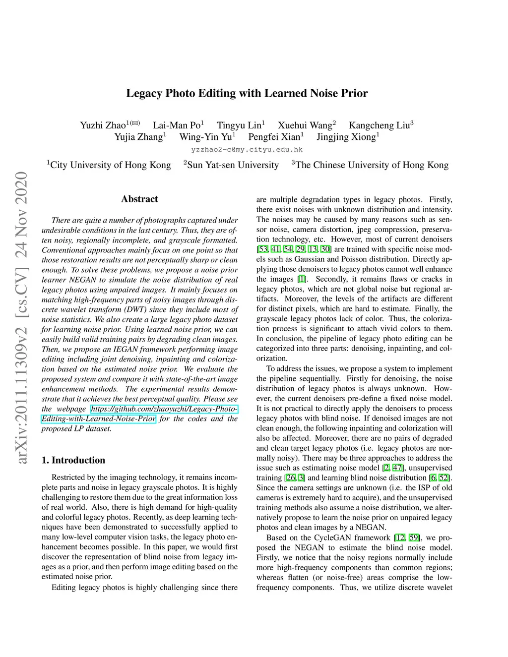 Legacy Photo Editing with Learned Noise Prior
