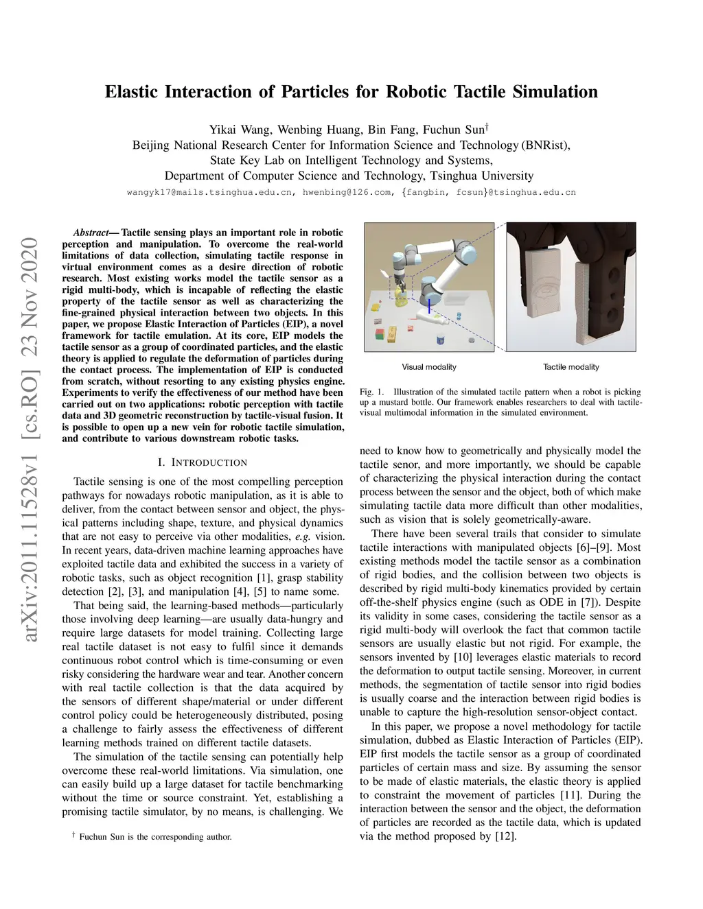 Elastic Interaction of Particles for Robotic Tactile Simulation
