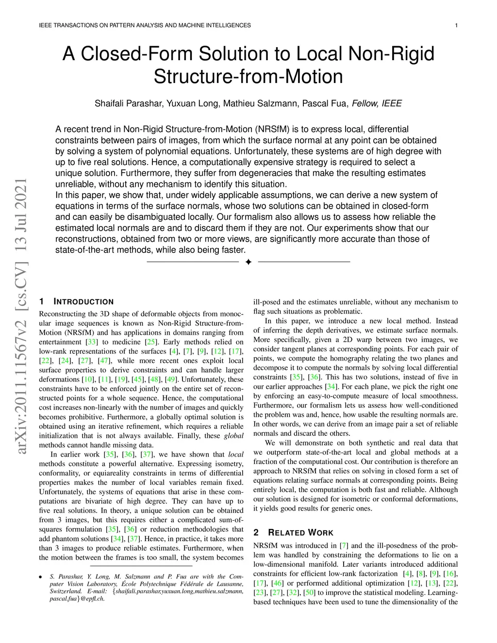A recent trend in Non-Rigid Structure-from-Motion (NRSfM) is to express local, differential constraints between pairs of images, from which the surface normal at any point can be obtained by solving a system of polynomial equations. The systems of equations derived in previous work, however, are of high degree, having up to five real solutions, thus requiring a computationally expensive strategy to select a unique solution. Furthermore, they suffer from degeneracies that make the resulting estimates unreliable, without any mechanism to identify this situation. In this paper, we show that, under widely applicable assumptions, we can derive a new system of equation in terms of the surface normals whose two solutions can be obtained in closed-form and can easily be disambiguated locally. Our formalism further allows us to assess how reliable the estimated local normals are and, hence, to discard them if they are not. Our experiments show that our reconstructions, obtained from two or more views, are significantly more accurate than those of state-of-the-art methods, while also being faster.