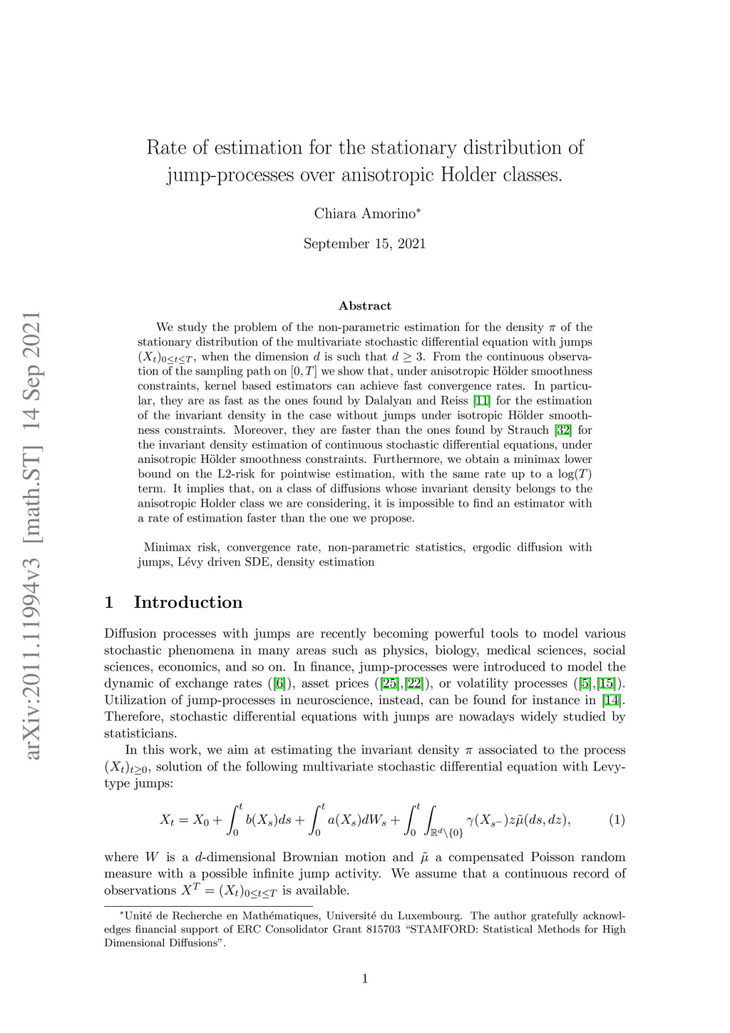 We study the problem of the non-parametric estimation for the density of the stationary distribution of the multivariate stochastic differential equation with jumps (Xt) , when the dimension d is bigger than 3. From the continuous observation of the sampling path on [0, T ] we show that, under anisotropic Holder smoothness constraints, kernel based estimators can achieve fast convergence rates. In particular , they are as fast as the ones found by Dalalyan and Reiss [9] for the estimation of the invariant density in the case without jumps under isotropic Holder smoothness constraints. Moreover, they are faster than the ones found by Strauch [29] for the invariant density estimation of continuous stochastic differential equations, under anisotropic Holder smoothness constraints. Furthermore, we obtain a minimax lower bound on the L2-risk for pointwise estimation, with the same rate up to a log(T) term. It implies that, on a class of diffusions whose invariant density belongs to the anisotropic Holder class we are considering, it is impossible to find an estimator with a rate of estimation faster than the one we propose.