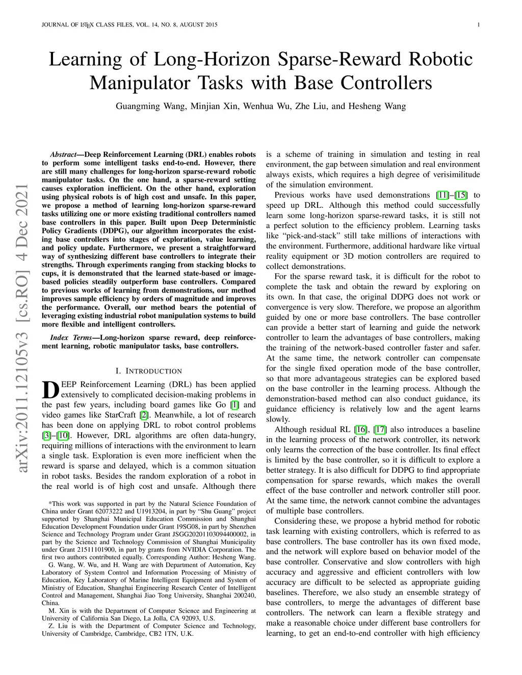 Deep Reinforcement Learning (DRL) enables robots to perform some intelligent tasks end-to-end. However, there are still many challenges for long-horizon sparse-reward robotic manipulator tasks. On the one hand, a sparse-reward setting causes exploration inefficient. On the other hand, exploration using physical robots is of high cost and unsafe. In this paper, we propose a method of learning long-horizon sparse-reward tasks utilizing one or more existing traditional controllers named base controllers in this paper. Built upon Deep Deterministic Policy Gradients (DDPG), our algorithm incorporates the existing base controllers into stages of exploration, value learning, and policy update. Furthermore, we present a straightforward way of synthesizing different base controllers to integrate their strengths. Through experiments ranging from stacking blocks to cups, it is demonstrated that the learned state-based or image-based policies steadily outperform base controllers. Compared to previous works of learning from demonstrations, our method improves sample efficiency by orders of magnitude and improves the performance. Overall, our method bears the potential of leveraging existing industrial robot manipulation systems to build more flexible and intelligent controllers.
