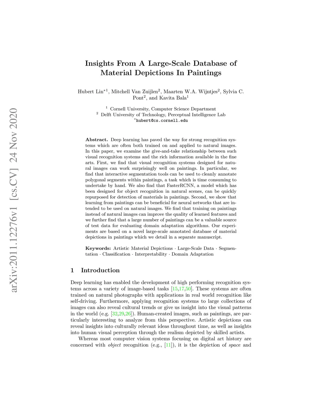 Deep learning has paved the way for strong recognition systems which are often both trained on and applied to natural images. In this paper, we examine the give-and-take relationship between such visual recognition systems and the rich information available in the fine arts. First, we find that visual recognition systems designed for natural images can work surprisingly well on paintings. In particular, we find that interactive segmentation tools can be used to cleanly annotate polygonal segments within paintings, a task which is time consuming to undertake by hand. We also find that FasterRCNN, a model which has been designed for object recognition in natural scenes, can be quickly repurposed for detection of materials in paintings. Second, we show that learning from paintings can be beneficial for neural networks that are intended to be used on natural images. We find that training on paintings instead of natural images can improve the quality of learned features and we further find that a large number of paintings can be a valuable source of test data for evaluating domain adaptation algorithms. Our experiments are based on a novel large-scale annotated database of material depictions in paintings which we detail in a separate manuscript.