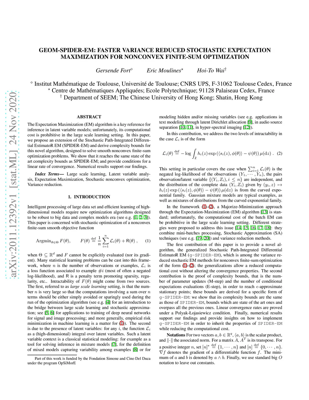 The Expectation Maximization (EM) algorithm is a key reference for inference in latent variable models; unfortunately, its computational cost is prohibitive in the large scale learning setting. In this paper, we propose an extension of the Stochastic Path-Integrated Differential EstimatoR EM (SPIDER-EM) and derive complexity bounds for this novel algorithm, designed to solve smooth nonconvex finite-sum optimization problems. We show that it reaches the same state of the art complexity bounds as SPIDER-EM; and provide conditions for a linear rate of convergence. Numerical results support our findings.