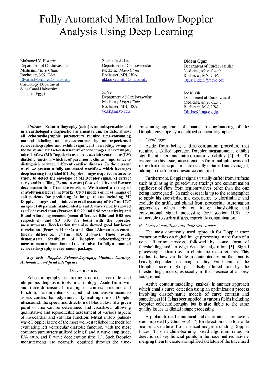 Fully Automated Mitral Inflow Doppler Analysis Using Deep Learning