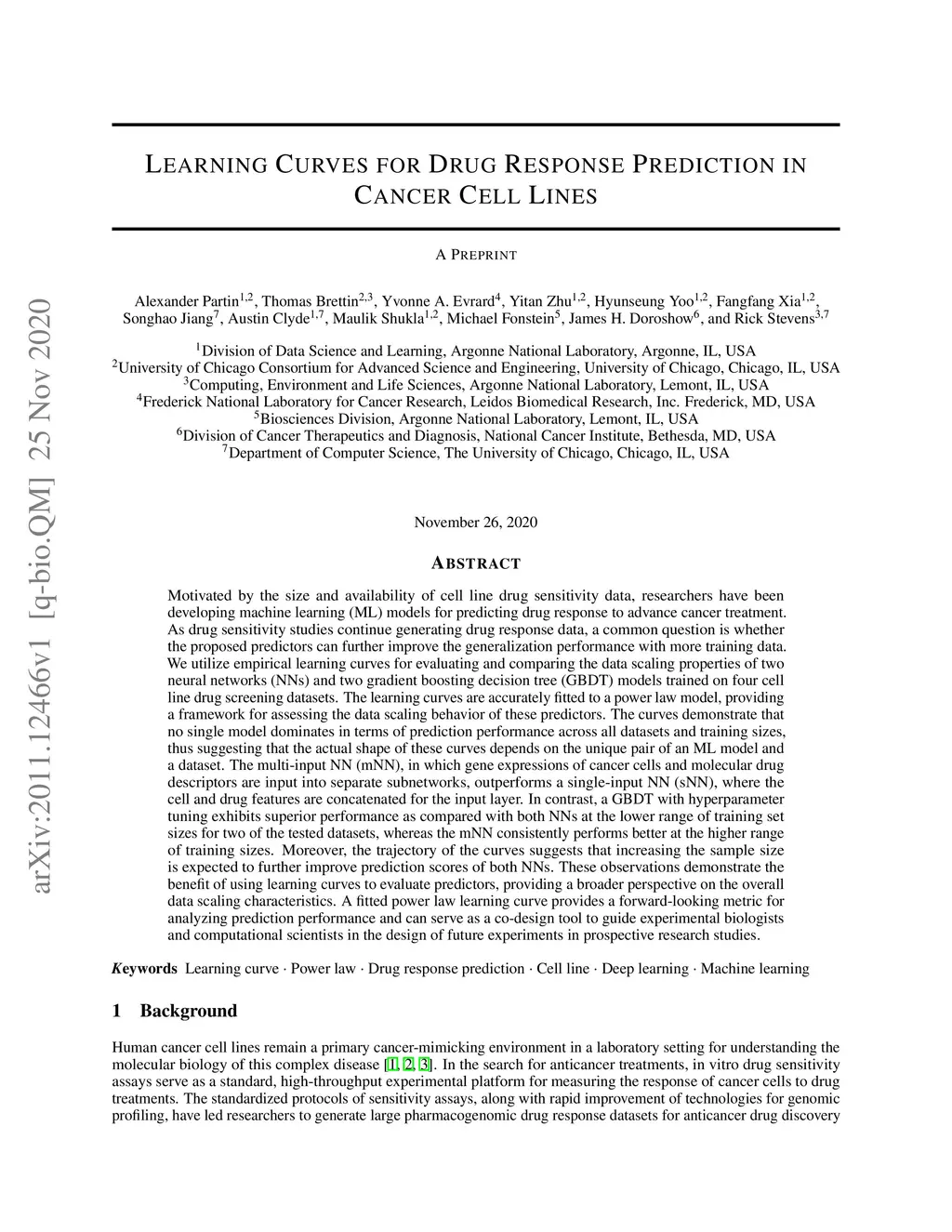 Learning Curves for Drug Response Prediction in Cancer Cell Lines
