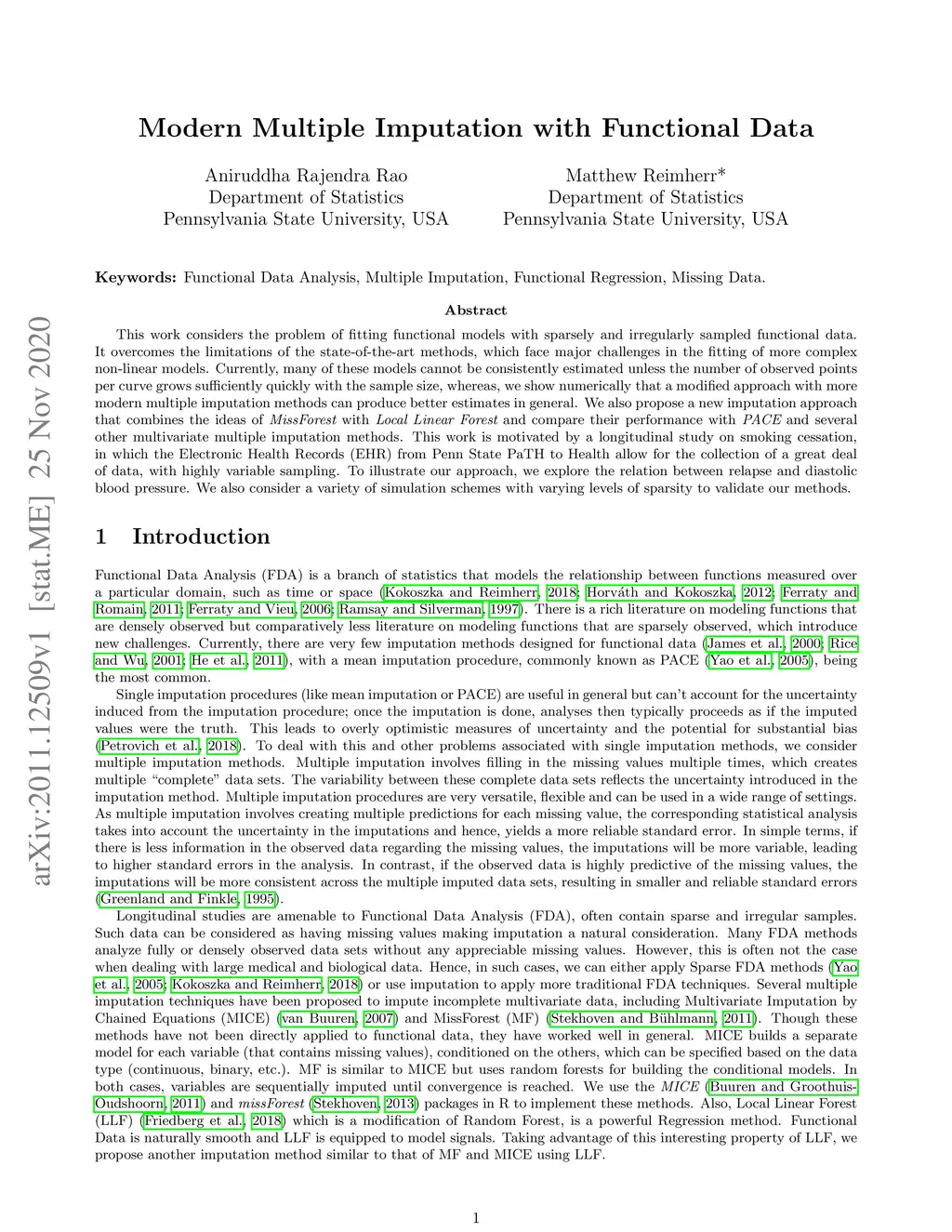 This work considers the problem of fitting functional models with sparsely and irregularly sampled functional data. It overcomes the limitations of the state-of-the-art methods, which face major challenges in the fitting of more complex non-linear models. Currently, many of these models cannot be consistently estimated unless the number of observed points per curve grows sufficiently quickly with the sample size, whereas, we show numerically that a modified approach with more modern multiple imputation methods can produce better estimates in general. We also propose a new imputation approach that combines the ideas of {\it MissForest} with {\it Local Linear Forest} and compare their performance with {\it PACE} and several other multivariate multiple imputation methods. This work is motivated by a longitudinal study on smoking cessation, in which the Electronic Health Records (EHR) from Penn State PaTH to Health allow for the collection of a great deal of data, with highly variable sampling. To illustrate our approach, we explore the relation between relapse and diastolic blood pressure. We also consider a variety of simulation schemes with varying levels of sparsity to validate our methods.