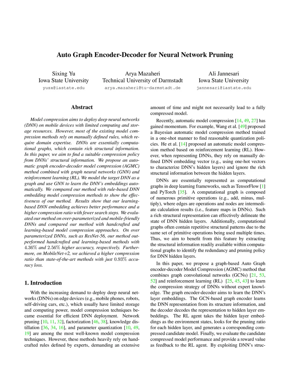 Auto Graph Encoder-Decoder for Neural Network Pruning