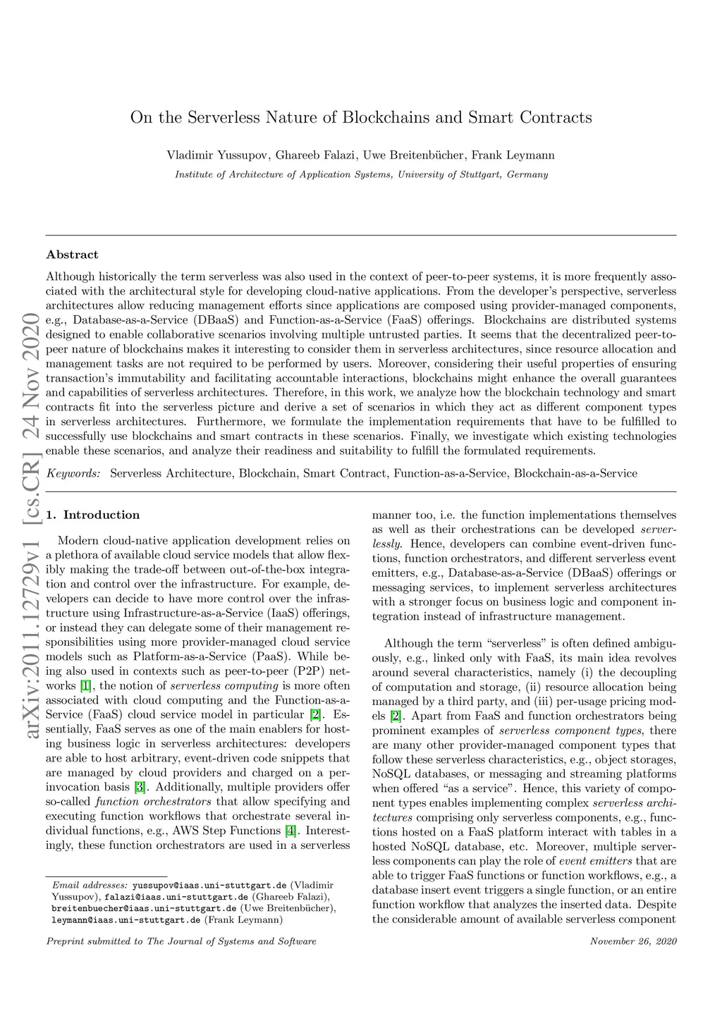 On the Serverless Nature of Blockchains and Smart Contracts