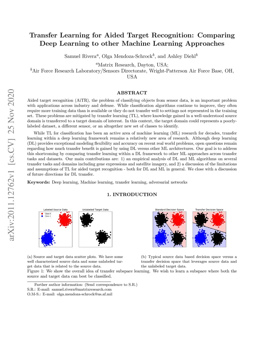 Aided target recognition (AiTR), the problem of classifying objects from sensor data, is an important problem with applications across industry and defense. While classification algorithms continue to improve, they often require more training data than is available or they do not transfer well to settings not represented in the training set. These problems are mitigated by transfer learning (TL), where knowledge gained in a well-understood source domain is transferred to a target domain of interest. In this context, the target domain could represents a poorly-labeled dataset, a different sensor, or an altogether new set of classes to identify. While TL for classification has been an active area of machine learning (ML) research for decades, transfer learning within a deep learning framework remains a relatively new area of research. Although deep learning (DL) provides exceptional modeling flexibility and accuracy on recent real world problems, open questions remain regarding how much transfer benefit is gained by using DL versus other ML architectures. Our goal is to address this shortcoming by comparing transfer learning within a DL framework to other ML approaches across transfer tasks and datasets. Our main contributions are: 1) an empirical analysis of DL and ML algorithms on several transfer tasks and domains including gene expressions and satellite imagery, and 2) a discussion of the limitations and assumptions of TL for aided target recognition -- both for DL and ML in general. We close with a discussion of future directions for DL transfer.