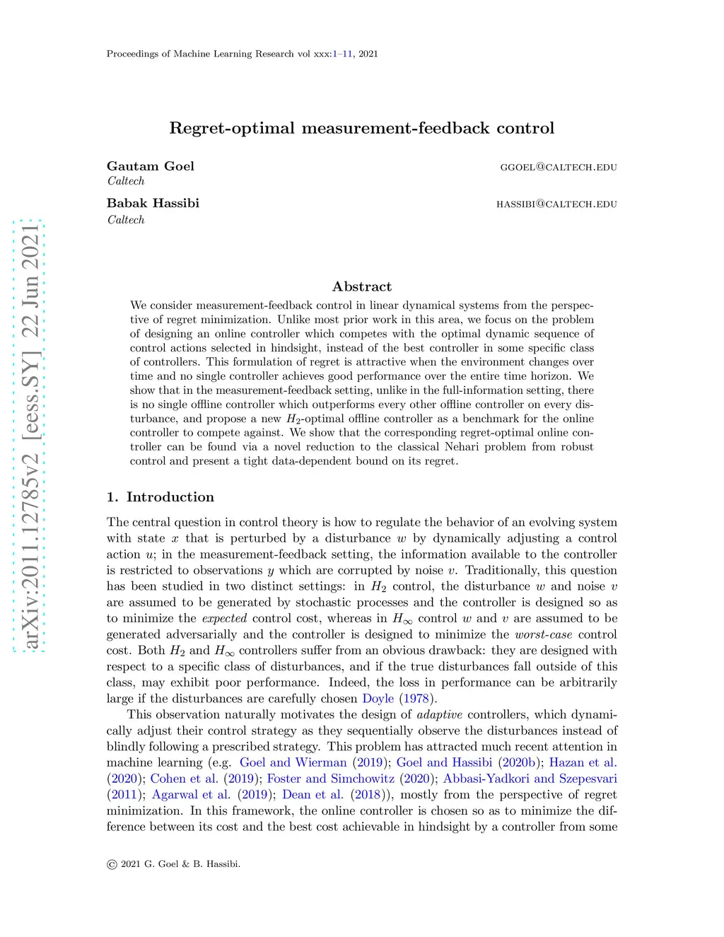 Regret-optimal measurement-feedback control
