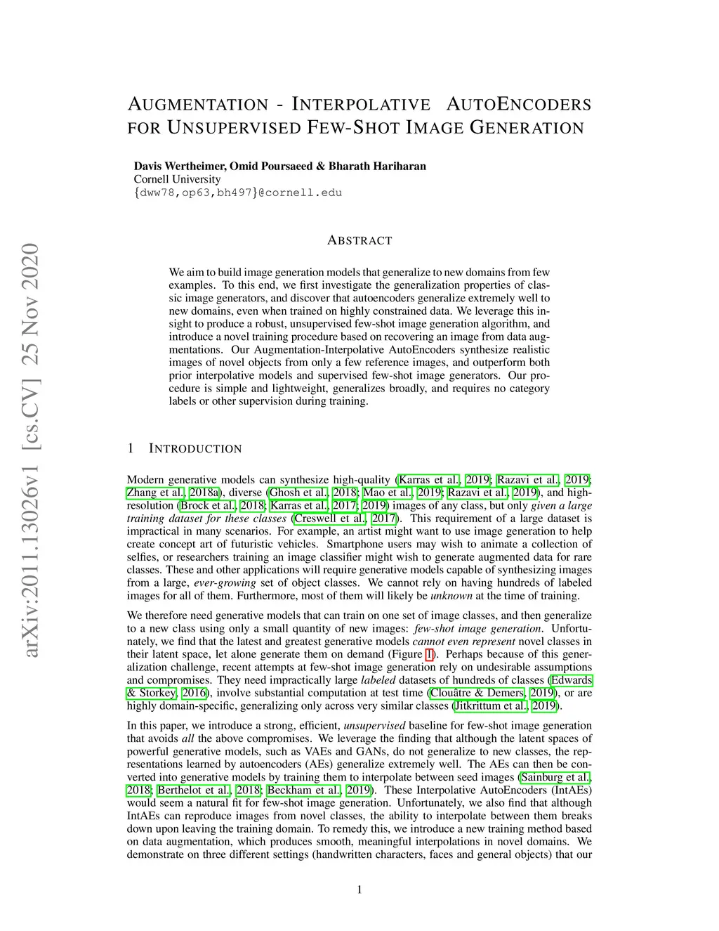 Augmentation-Interpolative AutoEncoders for Unsupervised Few-Shot Image