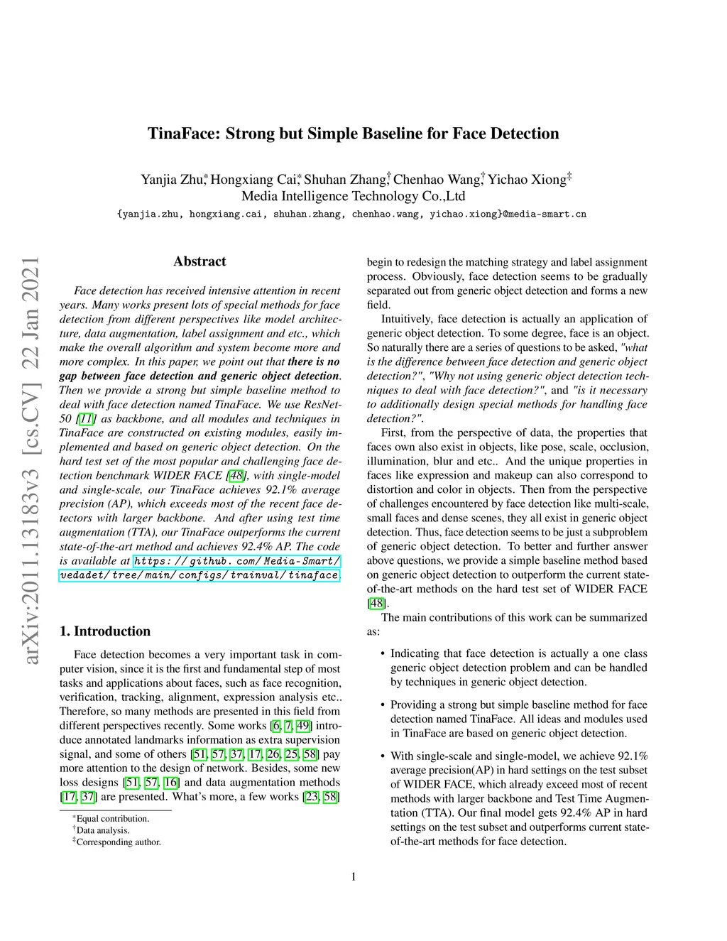 Face detection has received intensive attention in recent years. Many works present lots of special methods for face detection from different perspectives like model architecture, data augmentation, label assignment and etc., which make the overall algorithm and system become more and more complex. In this paper, we point out that \textbf{there is no gap between face detection and generic object detection}. Then we provide a strong but simple baseline method to deal with face detection named TinaFace. We use ResNet-50 \cite{he2016deep} as backbone, and all modules and techniques in TinaFace are constructed on existing modules, easily implemented and based on generic object detection. On the hard test set of the most popular and challenging face detection benchmark WIDER FACE \cite{yang2016wider}, with single-model and single-scale, our TinaFace achieves 92.1\% average precision (AP), which exceeds most of the recent face detectors with larger backbone. And after using test time augmentation (TTA), our TinaFace outperforms the current state-of-the-art method and achieves 92.4\% AP. The code will be available at \url{https://github.com/Media-Smart/vedadet}.