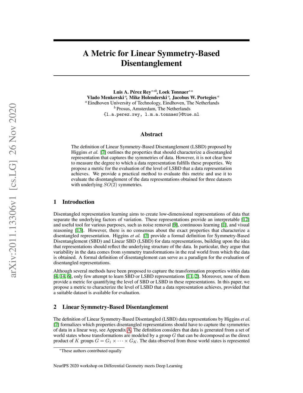 The definition of Linear Symmetry-Based Disentanglement (LSBD) proposed by (Higgins et al., 2018) outlines the properties that should characterize a disentangled representation that captures the symmetries of data. However, it is not clear how to measure the degree to which a data representation fulfills these properties. We propose a metric for the evaluation of the level of LSBD that a data representation achieves. We provide a practical method to evaluate this metric and use it to evaluate the disentanglement of the data representations obtained for three datasets with underlying symmetries.