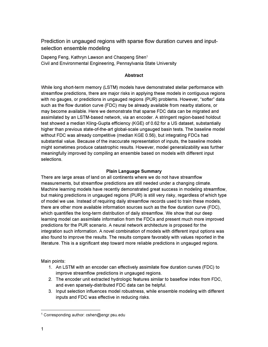 While long short-term memory (LSTM) models have demonstrated stellar performance with streamflow predictions, there are major risks in applying these models in contiguous regions with no gauges, or predictions in ungauged regions (PUR) problems. However, softer data such as the flow duration curve (FDC) may be already available from nearby stations, or may become available. Here we demonstrate that sparse FDC data can be migrated and assimilated by an LSTM-based network, via an encoder. A stringent region-based holdout test showed a median Kling-Gupta efficiency (KGE) of 0.62 for a US dataset, substantially higher than previous state-of-the-art global-scale ungauged basin tests. The baseline model without FDC was already competitive (median KGE 0.56), but integrating FDCs had substantial value. Because of the inaccurate representation of inputs, the baseline models might sometimes produce catastrophic results. However, model generalizability was further meaningfully improved by compiling an ensemble based on models with different input selections.