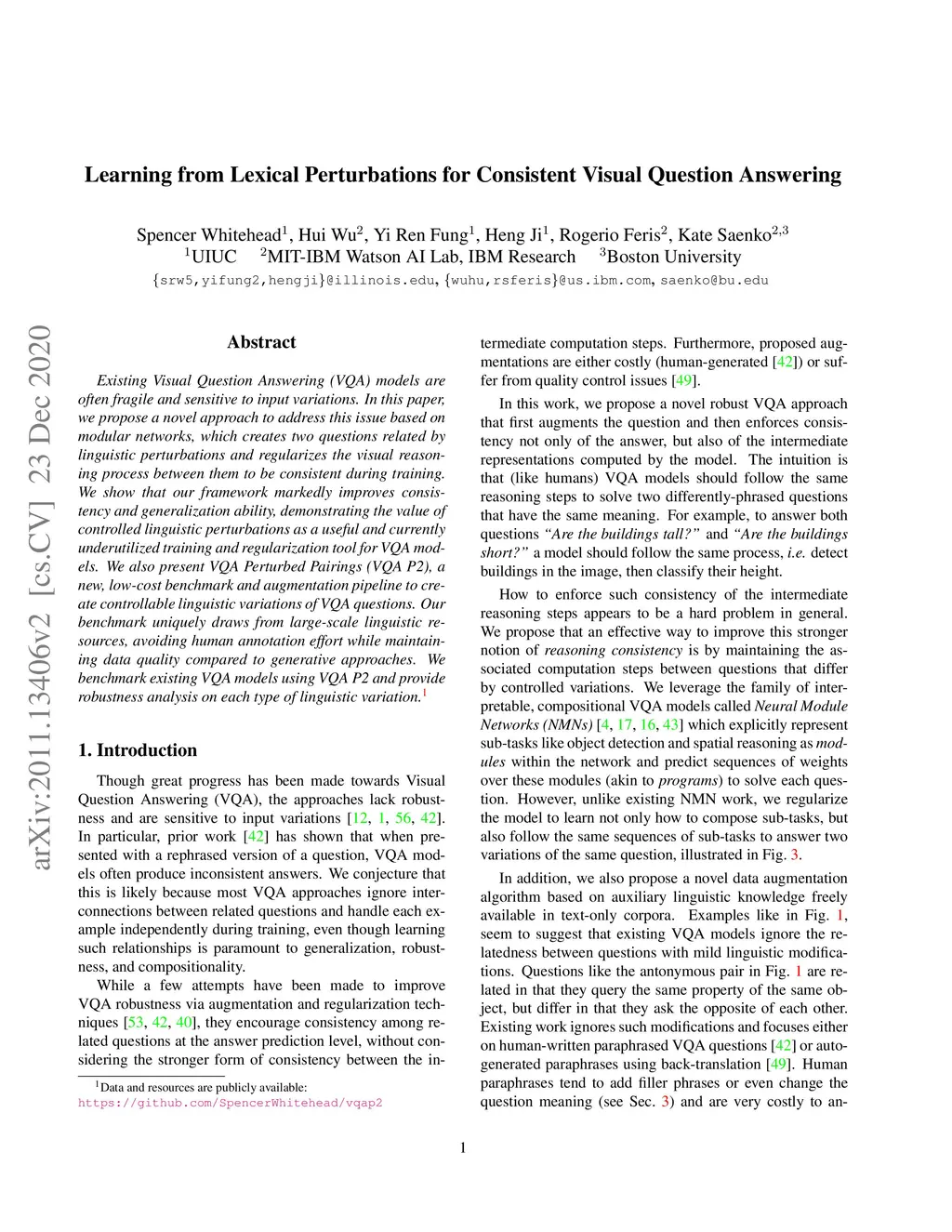 Existing Visual Question Answering (VQA) models are often fragile and sensitive to input variations. In this paper, we propose a novel approach to address this issue based on modular networks, which creates two questions related by linguistic perturbations and regularizes the visual reasoning process between them to be consistent during training. We show that our framework markedly improves consistency and generalization ability, demonstrating the value of controlled linguistic perturbations as a useful and currently underutilized training and regularization tool for VQA models. We also present VQA Perturbed Pairings (VQA P2), a new, low-cost benchmark and augmentation pipeline to create controllable linguistic variations of VQA questions. Our benchmark uniquely draws from large-scale linguistic resources, avoiding human annotation effort while maintaining data quality compared to generative approaches. We benchmark existing VQA models using VQA P2 and provide robustness analysis on each type of linguistic variation.