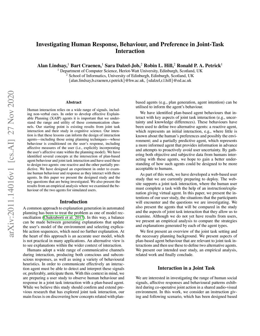 Investigating Human Response, Behaviour, and Preference in Joint-Task