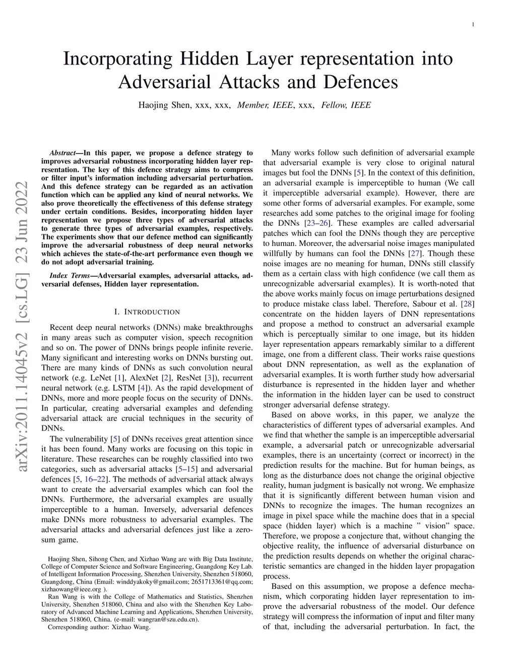 In this paper, we propose a defence strategy to improve adversarial robustness by incorporating hidden layer representation. The key of this defence strategy aims to compress or filter input information including adversarial perturbation. And this defence strategy can be regarded as an activation function which can be applied to any kind of neural network. We also prove theoretically the effectiveness of this defense strategy under certain conditions. Besides, incorporating hidden layer representation we propose three types of adversarial attacks to generate three types of adversarial examples, respectively. The experiments show that our defence method can significantly improve the adversarial robustness of deep neural networks which achieves the state-of-the-art performance even though we do not adopt adversarial training.