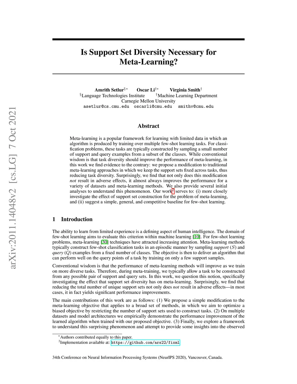 Is Support Set Diversity Necessary for Meta-Learning?