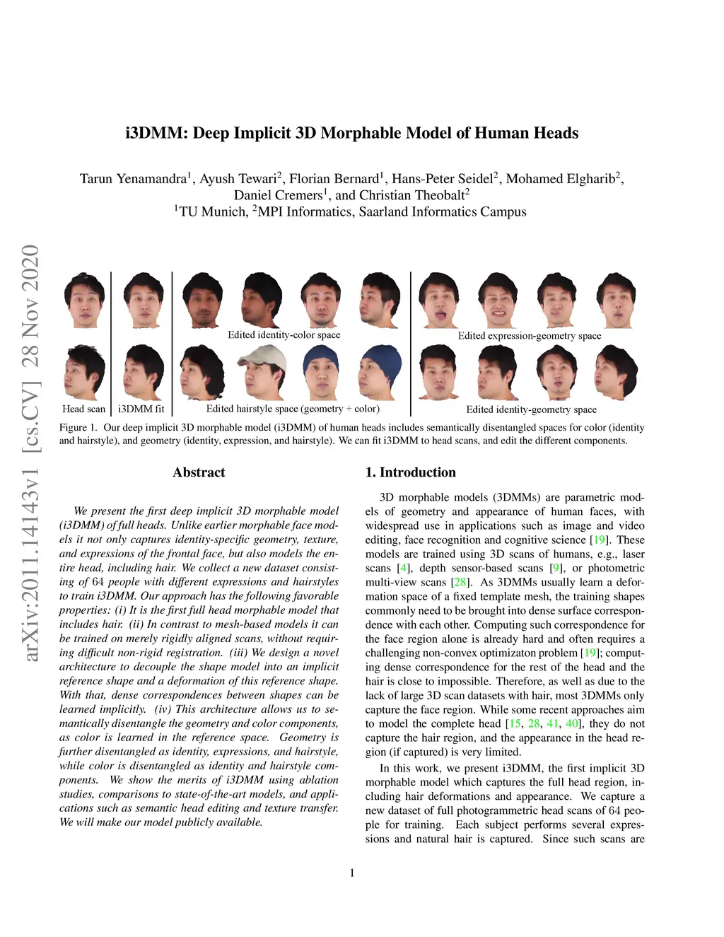 i3DMM: Deep Implicit 3D Morphable Model of Human Heads