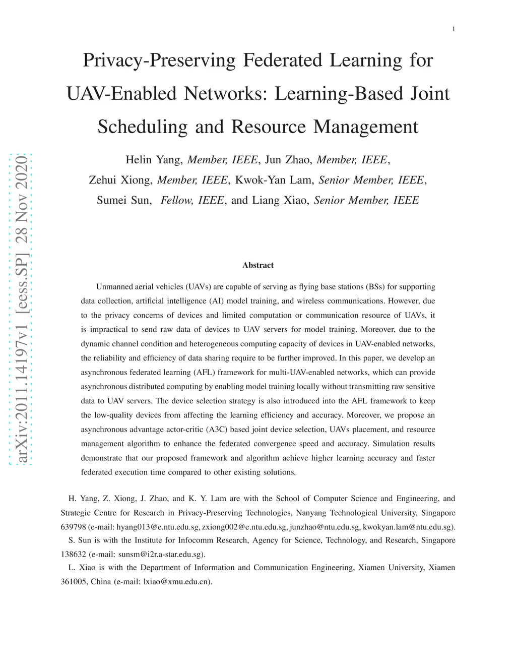 Privacy-Preserving Federated Learning for UAV-Enabled Networks: