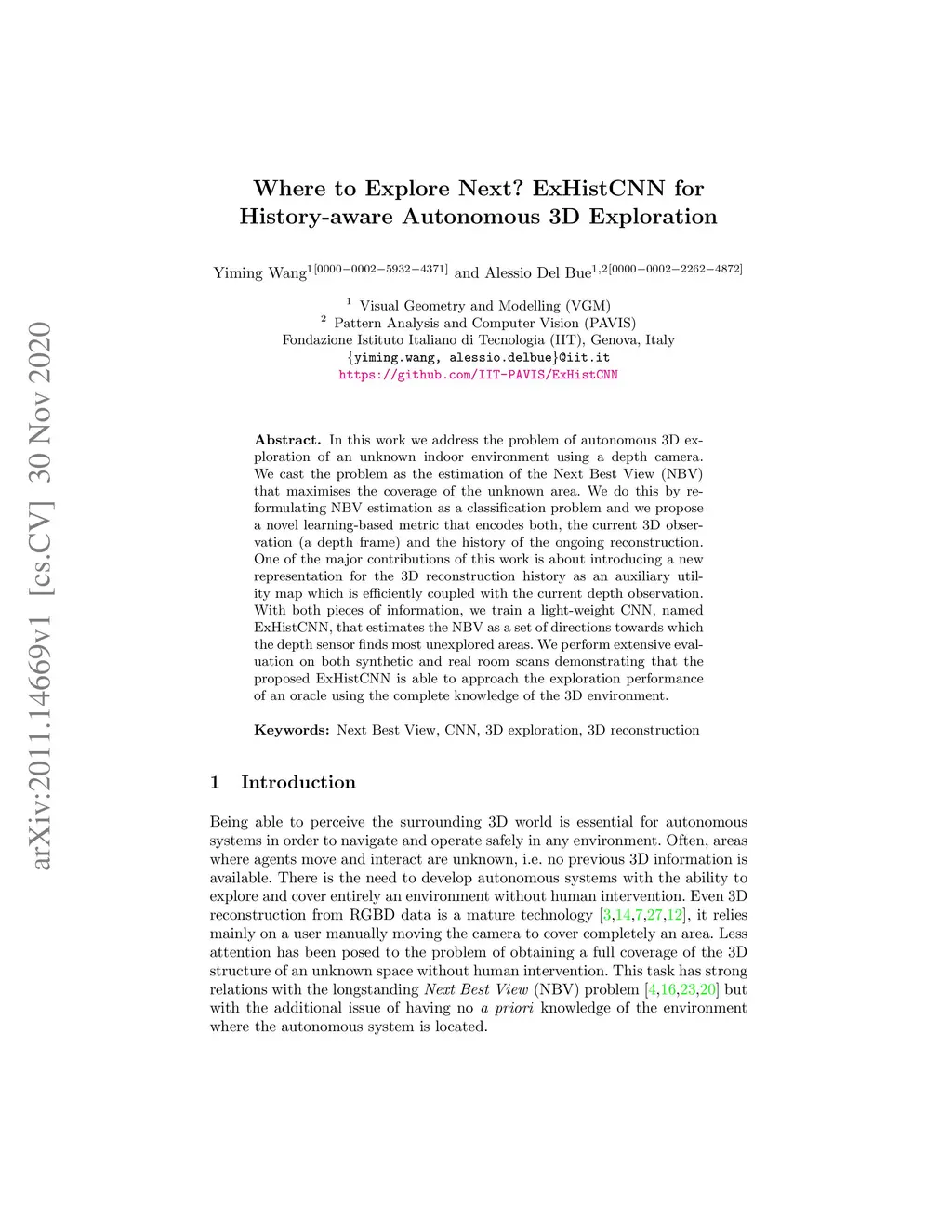Where to Explore Next? ExHistCNN for History-aware Autonomous 3D