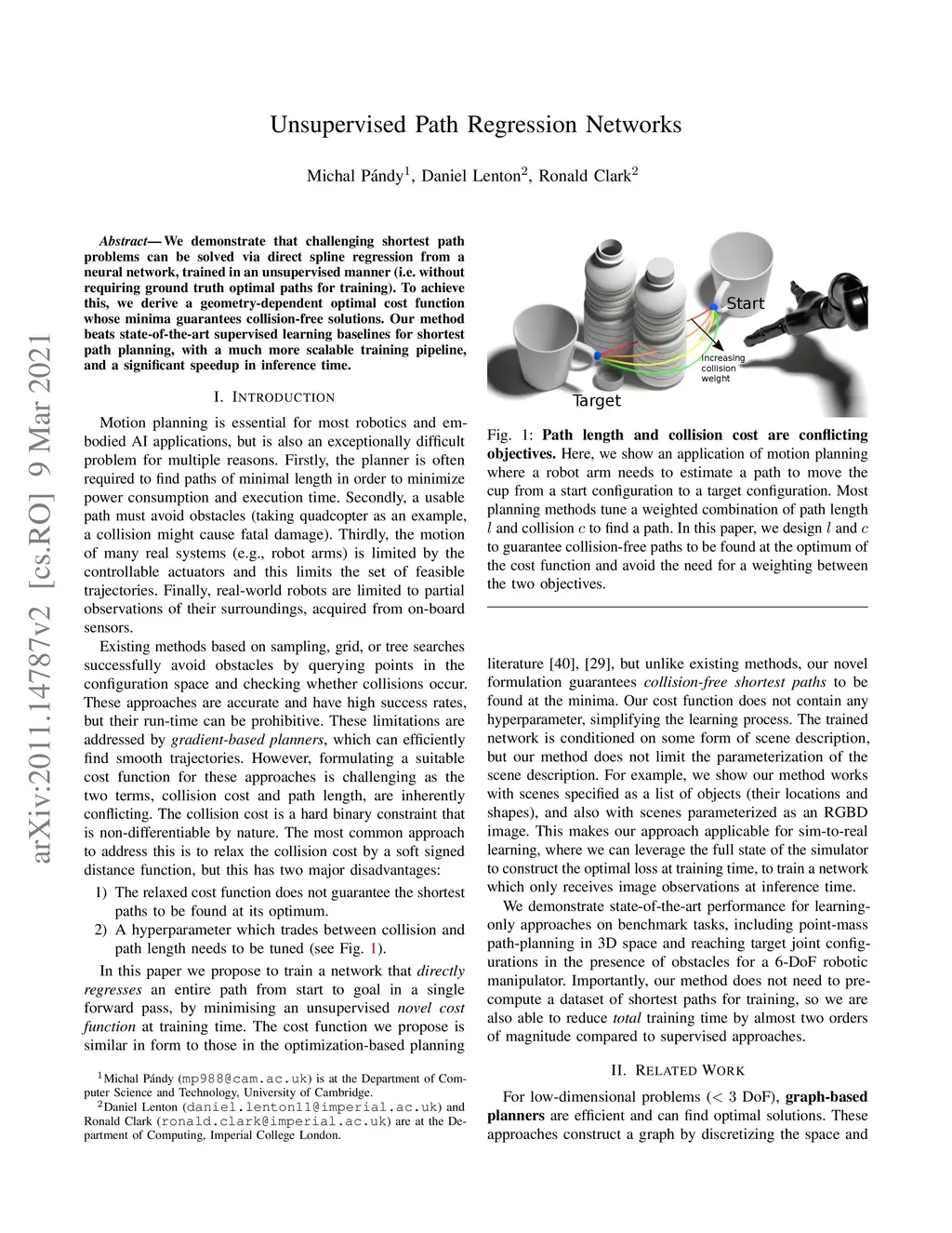 We demonstrate that challenging shortest path problems can be solved via direct spline regression from a neural network, trained in an unsupervised manner (i.e. without requiring ground truth optimal paths for training). To achieve this, we derive a geometry-dependent optimal cost function whose minima guarantees collision-free solutions. Our method beats state-of-the-art supervised learning baselines for shortest path planning, with a much more scalable training pipeline, and a significant speedup in inference time.