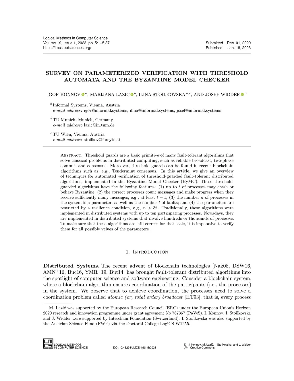 Threshold guards are a basic primitive of many fault-tolerant algorithms that solve classical problems in distributed computing, such as reliable broadcast, two-phase commit, and consensus. Moreover, threshold guards can be found in recent blockchain algorithms such as, e.g., Tendermint consensus. In this article, we give an overview of techniques for automated verification of threshold-guarded fault-tolerant distributed algorithms, implemented in the Byzantine Model Checker (ByMC). These threshold-guarded algorithms have the following features: (1) up to of processes may crash or behave Byzantine; (2) the correct processes count messages and make progress when they receive sufficiently many messages, e.g., at least ; (3) the number of processes in the system is a parameter, as well as the number of faults; and (4) the parameters are restricted by a resilience condition, e.g., . Traditionally, these algorithms were implemented in distributed systems with up to ten participating processes. Nowadays, they are implemented in distributed systems that involve hundreds or thousands of processes. To make sure that these algorithms are still correct for that scale, it is imperative to verify them for all possible values of the parameters.
